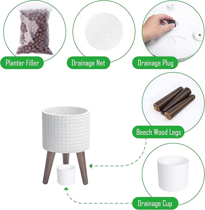 - Stable Wooden Stand: Comes with a sturdy, mid-century-style wooden stand to elevate your plants while enhancing stability and style.