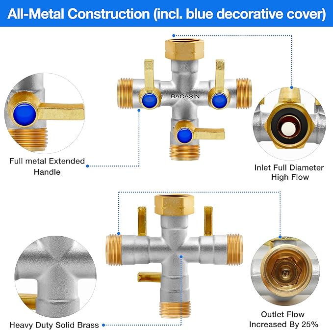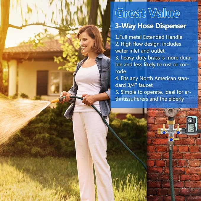 - 【Adapted to standard interfaces】Inlet is GHT 3/4-inch female thread, 3-way outlet is GHT 3/4-inch male thread, compatible with any North American standard 3/4-inch faucet, garden hose fitting, watering fixture, and maintains long term stable operation and water tightness.
