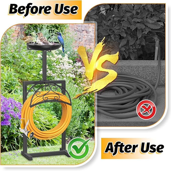 - Upgraded To Add Feeders: The garden hose reel storage stand is versatile, with the addition of feeder trays to hold water and food for birds