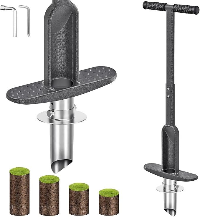 - Adjustable Digging Depth: With 4 digging depth options (3", 4", 5", 6"), you can adjust the required digging depth according to your needs. The grass plug cutter is not only a long bulb planter, it can also be used as a weeder, lawn repair, lawn plugger, grass plug tool, hole digger and for transplanting seeds, flowers and vegetables.