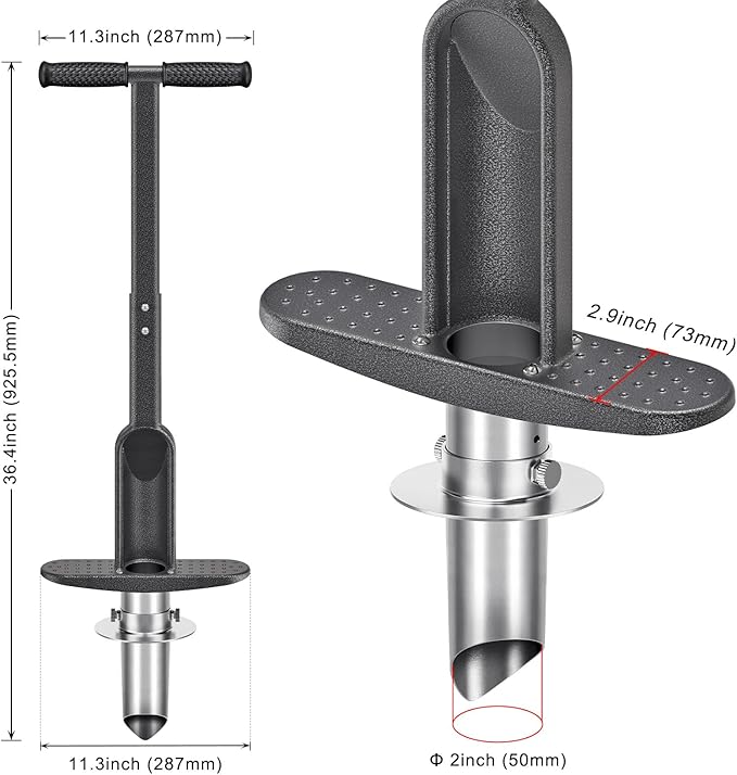 - Long handle bulb planter tool: The sod plugger tool has a long handle that can be operated comfortably while standing, effectively relieving hip and back strain. And there is a comfortable T-shaped non-slip rubber grip design to reduce hand fatigue and prevent blisters.