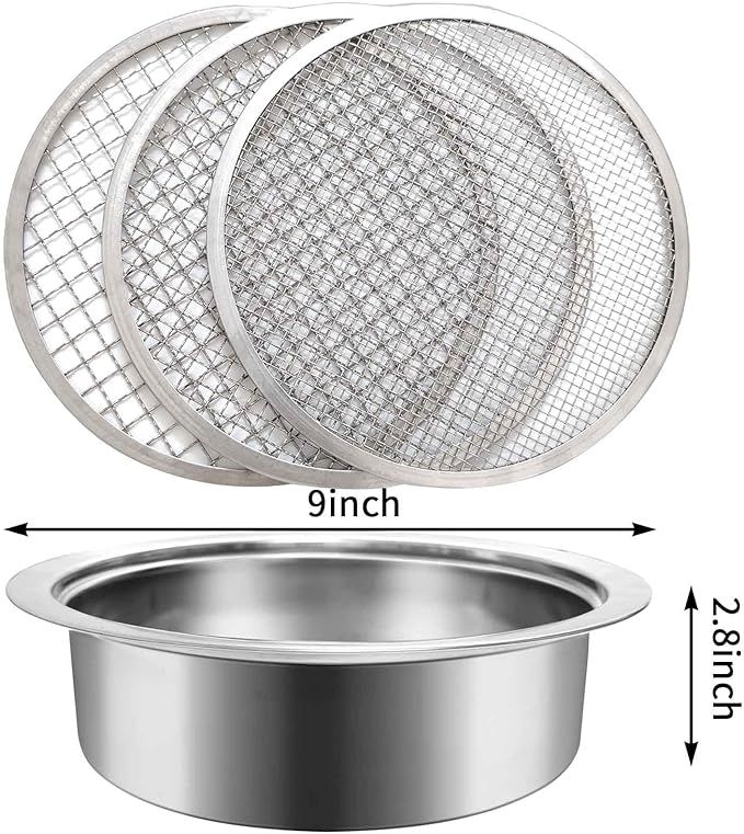 - 【High-Quality Stainless Steel】The soil sieve is made from premium stainless steel, ensuring rustproof, durability, and sturdy. It resists breaking, corrosion, and deformation, offering a long-lasting tool. The metal frame measures 9.5 inches in diameter and 2.5 inches in height, accommodating more soil for quick sifting of rocks, sand, and worms.