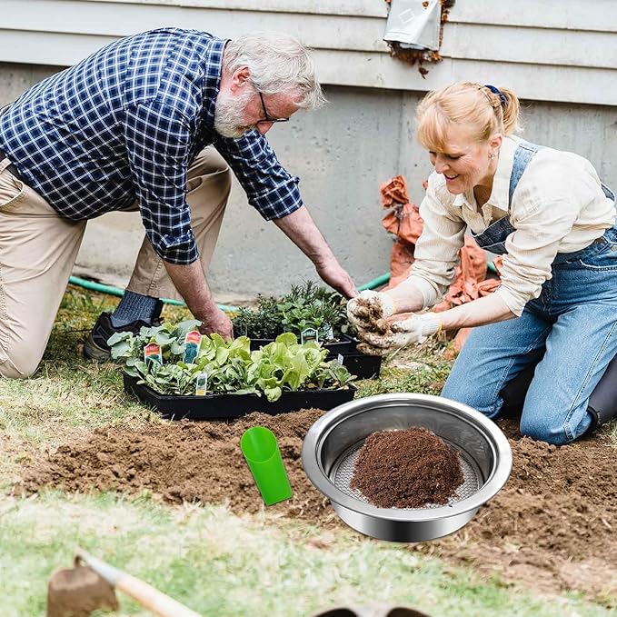 - 【Three Interchangeable Mesh Sizes】Our dirt sifter for gardening set includes three mesh sizes (3mm, 6mm, 9mm) to accommodate various gardening tasks. Perfect for soil sifting, planting, seeding, and cultivation, this tool meets all your soil preparation needs.