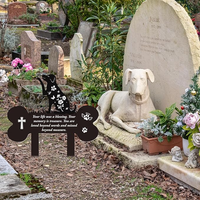 - Easy to use: The dog grave markers is designed with a long pointed tip that makes it easy to insert directly into the lawn and securely fix it. The user simply digs a hole in the soil, inserts the headstone and then fills in the soil