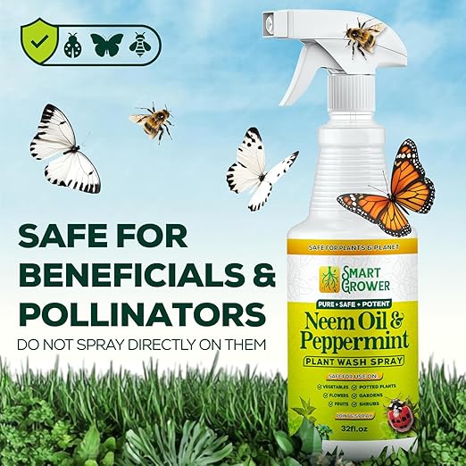 Neem Oil Spray for Plants with Peppermint Oil, Natural Plant Wash Made for Indoor and Outdoor Plants Smart Grower 32oz Easy Ready to Use Spray