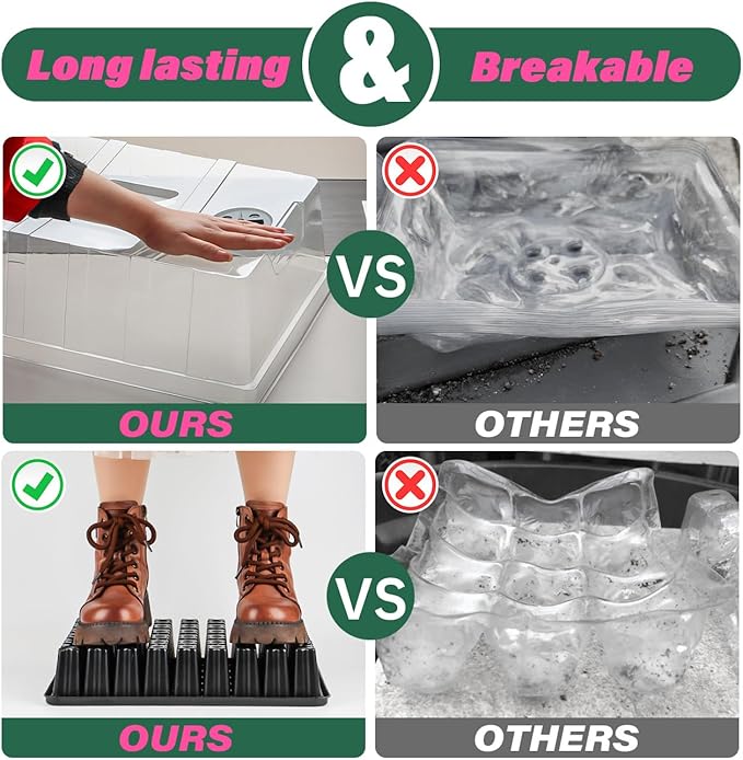 - 【Sturdy and Reusable Kits】Our weather resistant seed starting trays with adjustable air vents are made of thicker, higher quality plastic material, wich is strong enough for a long term repeated use. And our deep seed starting trays with dome are easier to clean store and move.