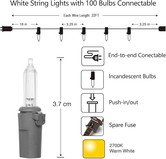 - Wildly Application: Our corded-electric string lights are certified for quality and safety. They’re ideal for decorating Christmas trees, wreaths, patios, weddings, holidays, and more! Just keep them away from water immersion to ensure longevity and safety