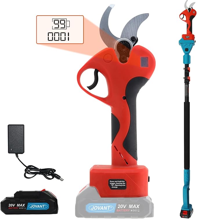 - Jovant Brand Electric Pruner:1.6inch(40mm)electric pruner cutting quickly and cleanly trim branches without damage.High strength steel blades and a brushless motor ensure sharpness and durability for cutting 1.6inch branches.Ideal for gardens,parks,farms,and orchards,perfect for grapevines and fruit tree pruning job.