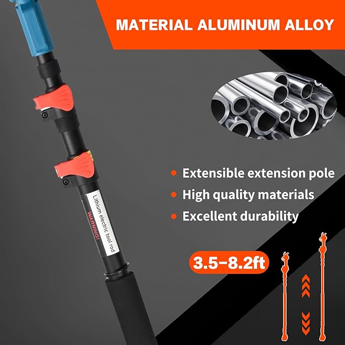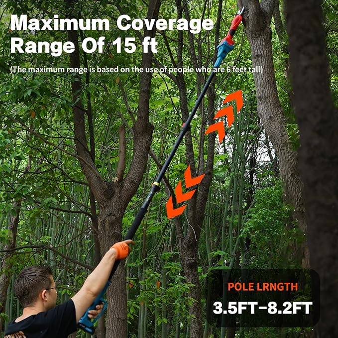 - 2-In-1 Electric Pole Type Electric Clipper:The pole type electric clipper that can trim branches at high altitude and the handheld electric clipper that can trim branches at low altitude can be switched at any time,solving the problem of working in high altitude or narrow areas.