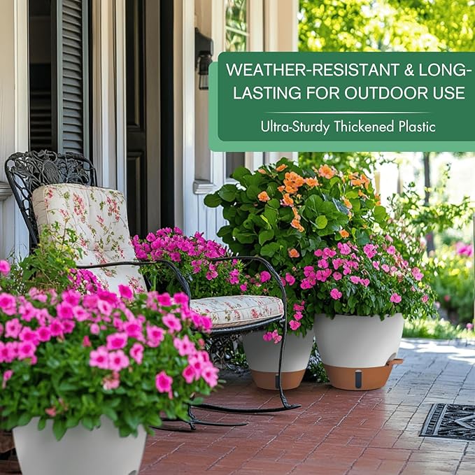 - 【Sturdy PP Modern Planter — Built to Last, Indoors & Out】Crafted with lightweight heat-resistant PP plastic, these WEATHER-RESISTANT plastic planters for outdoor plants won't crack, fade, or warp. Surtable for livingrooms, patios, or garden — their reinforced construction handles high-temperature while keeping that clean look year-round. No-fuss style that blends anywhere.