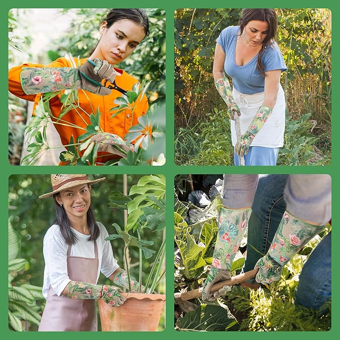 - Forearm Protection & Adjustable Cuff: These rose gloves feature synthetic leather long sleeves that extend up to the forearms, offering excellent protection against cuts and scratches when reaching into dense foliage or handling thorny plants. The adjustable cuff ensures a snug, secure fit, preventing dirt and debris from entering the garden gloves. Perfect for both men and women, these rose gloves provide enhanced comfort and protection for all gardening tasks
