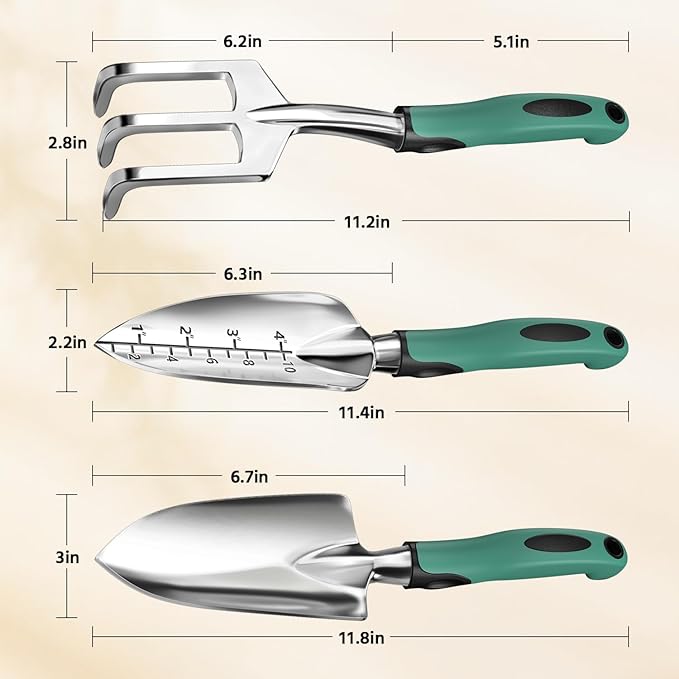 - 【All-in-One Gardening Kit】This 3-piece set includes a trowel, transplanter, and cultivator, providing all the tools you need for planting, digging, and soil cultivation. Enjoy exceptional value and versatility solution that makes your gardening more enjoyable, and more efficient.