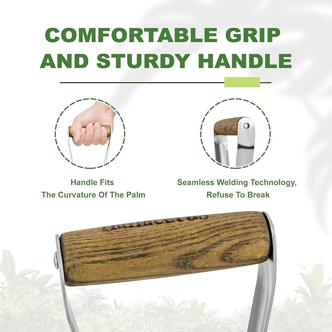 - 【Comfortable Grip Wooden Handle】The handle of garden tool bulb planter is designed in an ergonomic streamline, which fits the natural shape of the hand when holding and using, which helps to provide comfort and good posture when kneeling to plant small bulbs, making the gardening process more comfortable and labor-saving.