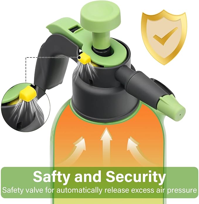 - Safe Automatic Pressure Relief: Lawn sprayer is equipped with a safety valve; excess air pressure will be automatically released, ensuring safety and reliability