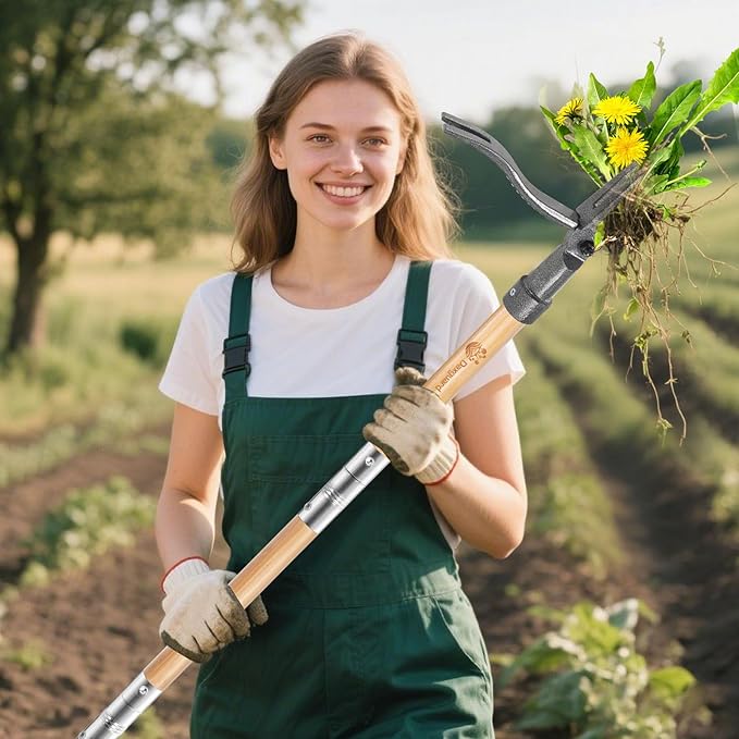 - Heavy-Duty Cast Steel 4-Claw Performance:Equipped with a sturdy cast steel 4-claw head, our stand-up weed puller grips roots firmly—even in tough soil. The 7" long claws ensure deep penetration to prevent regrowth, with reinforced construction for durable, stable performance. The ultimate tool for removing dandelions, thistles, and other invasive weeds
