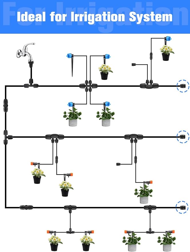 - 【Essential Garden Supples】These 1/2 drip irrigation fittings can be applied for gardens, plant greenhouses, agricultural watering, patio vegetable gardens, flower beds, terraces and lawns, and other agricultural irrigation.