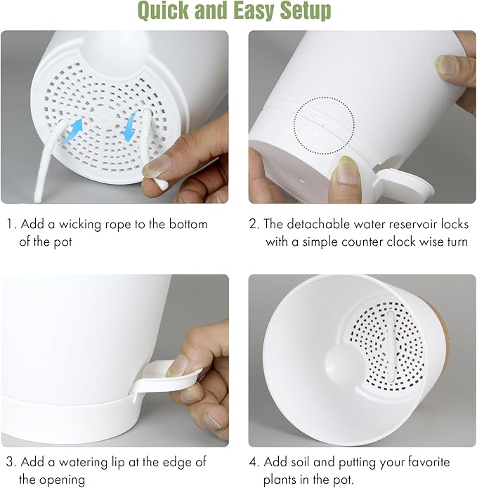 - 【Self-Watering Design】These 4 inch self watering pots for indoor plants are designed with a wick rope that draws water from the reservoir at the bottom. The set of 6 plastic self watering planter provides an optimal air circulation system for plant roots