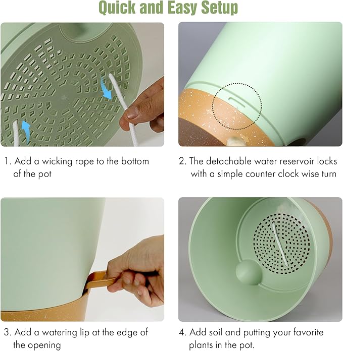 - 【Self-Watering Design】These 4 inch self watering pots for indoor plants are designed with a wick rope that draws water from the reservoir at the bottom. The set of 6 plastic self watering planter provides an optimal air circulation system for plant roots