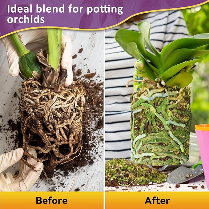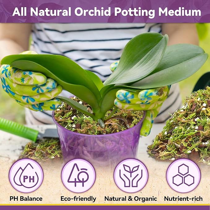 - Premium Orchid Potting Mix: This orchid repotting kit is carefully formulated with bark, perlite, coco peat, and forest moss, using 100% natural materials, ensuring that plants grow in a healthy medium, making it perfect for various orchid species, especially epiphytic orchids like phalaenopsis, cattleya, and dendrobium, helping your orchid roots grow strong and healthy