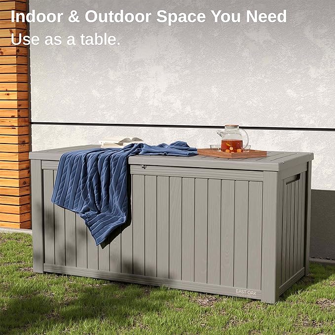 EAST OAK Outdoor Storage Box, 180 Gallon Deck Box, Large Resin Storage Bin for Patio Cushions & Gardening Tools, Lockable, Waterproof, UV Resistant, Grey