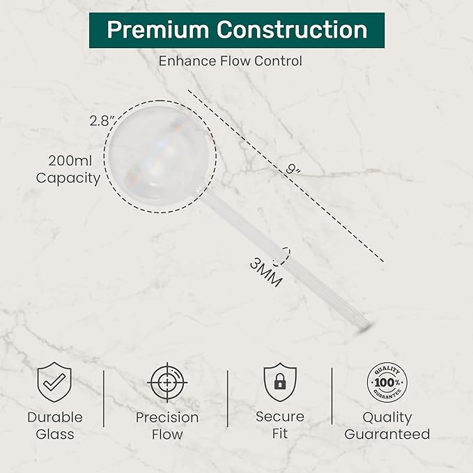 - High Quality - LGL glass watering globes for plants are hand blown from high quality, durable glass. Each self watering globe is crafted with special care. The self watering spikes measures 9” and the bulb is 2.8”, making them ideal water globes for indoor plants.