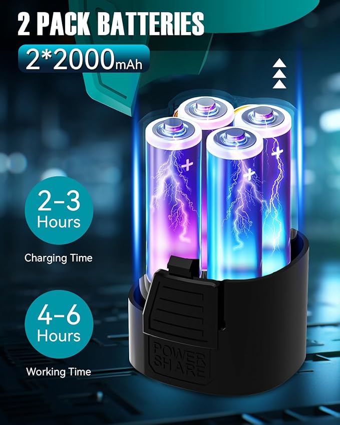 - High-Performance Battery: This electric pruning shear includes two high-energy-density 2000mAh rechargeable batteries, allowing for over 2000 cuts (2 x 1000), with fast charging in 2-3 hours, offer 4-5 hours of continuous operation. It is designed to handle even high-intensity, continuous work with ease