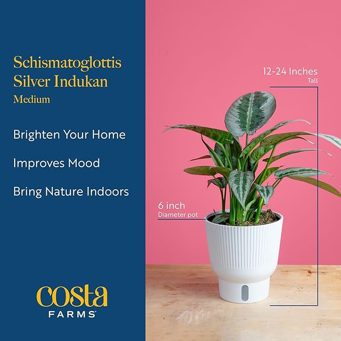 Costa Farms Silver Indukan Live Plant, Rare Unique Live Indoor Plant in 6-Inch Self-Watering Houseplant Pot, Potting Soil, Trending Tropicals Collection, Room and Home Decor