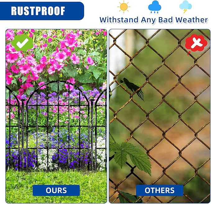 - ARCHED DECORATIVE FENCE - Classic arch design, more beautiful look, decorating your garden, yard, patio landscape, dress up your plants, flower bed, create clear borders and areas for plants, vegetables, garden, lawn, flower bed edging, keep small animals out of your garden, prevent the dogs from digging these areas