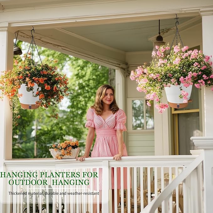 - 【Healthy Roots, Happy Plants】Our hanging planters feature GRID DRAINAGE HOLES at the bottom to quickly drain excess water and prevent standing water, while side ventilation ports maintain airflow around roots. The patented NO-SPILL WATERING LIP allows precise watering even in hard-to-reach hanging positions. No more messy water stains - just healthier plants that thrive!"