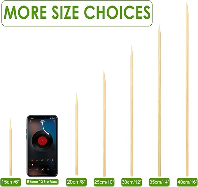 - Multi Occasions Use - Wooden sticks are an indispensable choice for barbecue party, camping trips, holiday events, wedding. And these wood skewers are pefect tool for meat, poultry, seafood, veggies, cheese, cake decoration, cupcake toppers,fondue and even plant supports!