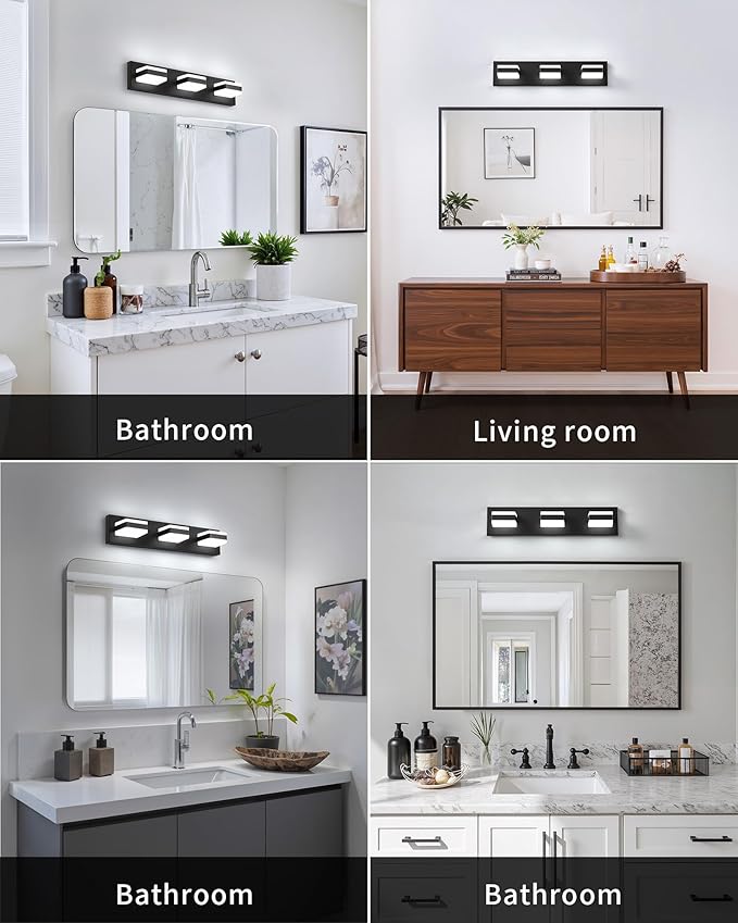 - Wide Application: Black bathroom vanity lighting. Modern and simple style design, suitable for bathroom, restroom, powder room, dressing room, over mirror, mirror cabinets, bedroom, living room etc. Modern LED vanity light goes with your lifestyle.
