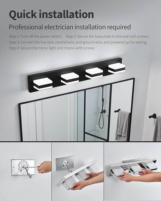 - Easy to Install: This modern vanity light features and installs in just 15 minutes. Equipped it is hardwired to fit a standard US backplate, requiring no additional assembly. The fixture mounts above the mirror and is ready to use by connecting to the pre-wired connections and securing it to the wall.