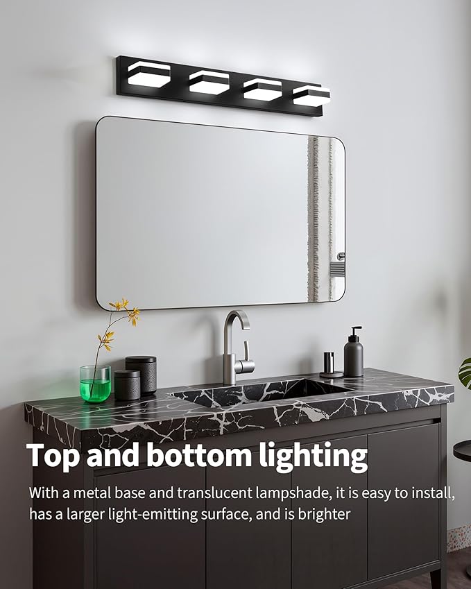 - Wide Application: Black bathroom vanity lighting. Modern and simple style design, suitable for bathroom, restroom, powder room, dressing room, over mirror, mirror cabinets, bedroom, living room etc. Modern LED vanity light goes with your lifestyle.
