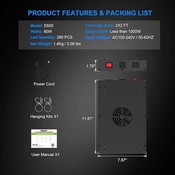 600W LED Grow Light, Plant Lights for Indoor Growing, Full Spectrum Grow Lights for Indoor Plants with Daisy Chain for 2x2 Grow Gent