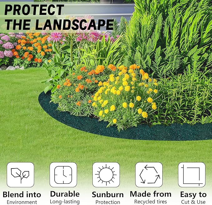 - Allow Air Flow: Recycled garden edging border mat is made of recycled rubber tires, designed to let air and water penetrate more effectively to ensure plant roots are getting optimal support. It can withstand outdoor high temperatures and all seasons, maintaining a lasting clean edge.