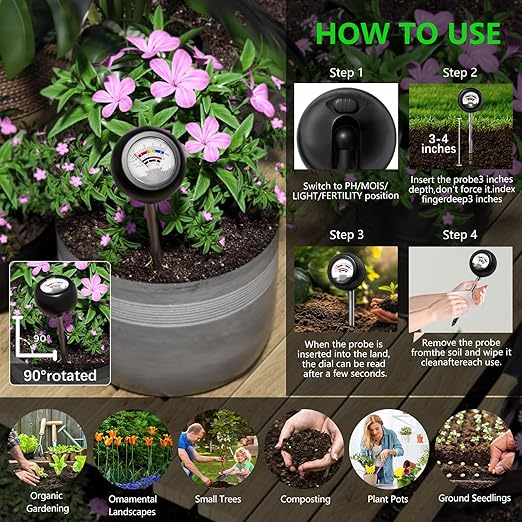 - WIDE RANGE OF USES: Home gardening, flower planting, greenhouse planting, rice planting, vegetable planting, pot planting, soil testing etc., to meet your needs for soil moisture testing, soil fertility testing and soil pH testing