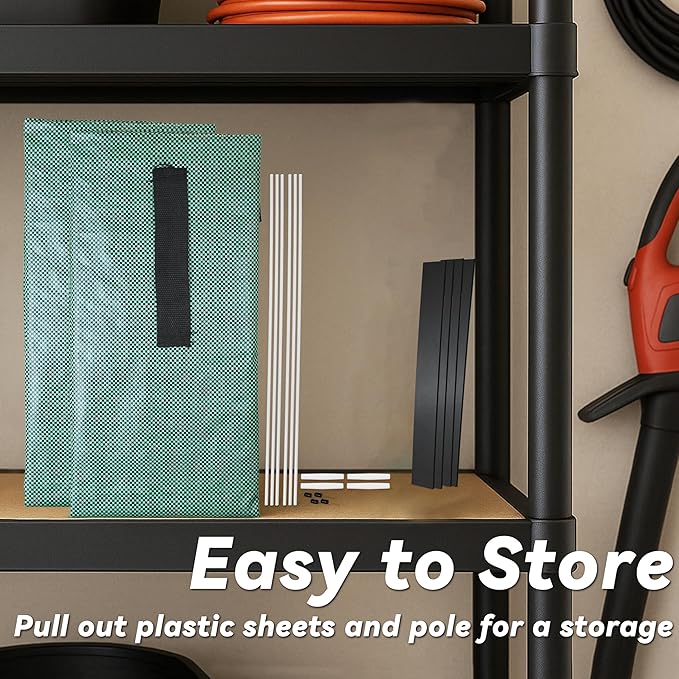 - Quick Assembly & Compact Storage: Simply insert the fiberglass rods for instant setup, and when the job's done, fold flat to 1" thickness for easy storage between seasons