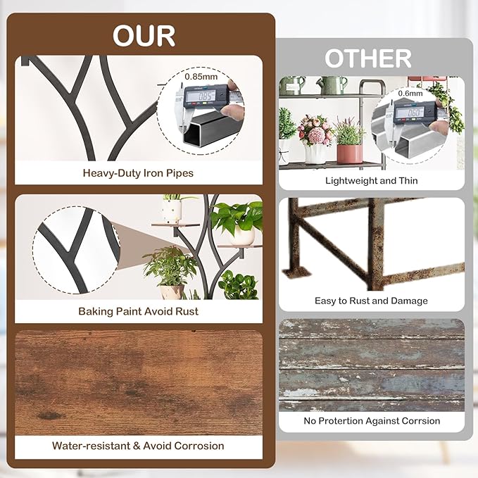 - 【Stable Structure with Anti-Tip Safety Design】Our plant stands are equipped with an anti-tip device that secures the shelf firmly to the wall, preventing accidental tipping. Ideal for homes with pets and children, offering peace of mind and enhanced safety.