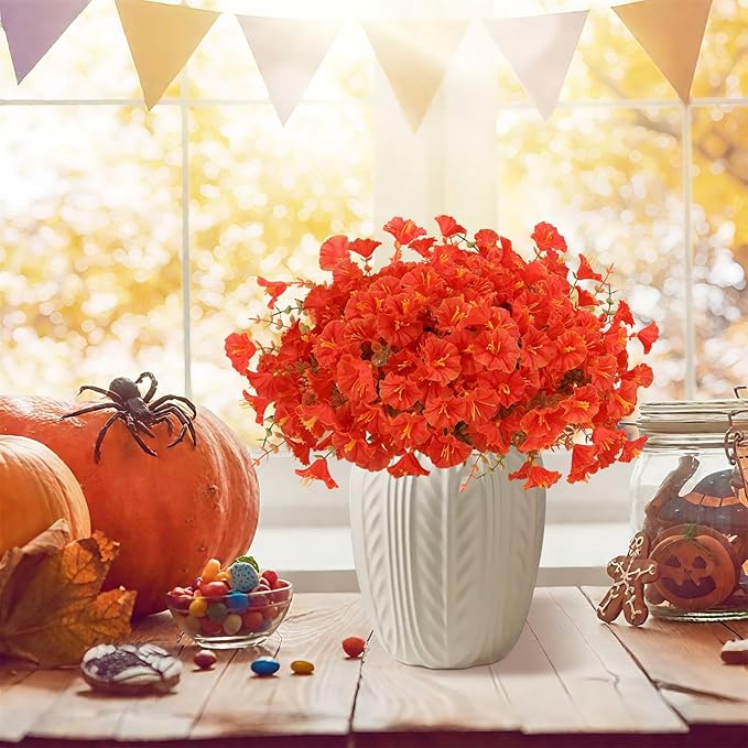 - Lifelike Fall Colors-Rich autumn red tones and eucalyptus accents give these fake fall flowers a natural, seasonal look, perfect for front doors, garden beds, and fences.