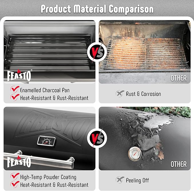 - Heavy-Duty & Movability BBQ Charcoal Grill: Designed with reinforced heavy-duty legs for superior stability and durability, also features two sturdy wheels for effortless mobility. Perfect for grand outdoor BBQ gatherings
