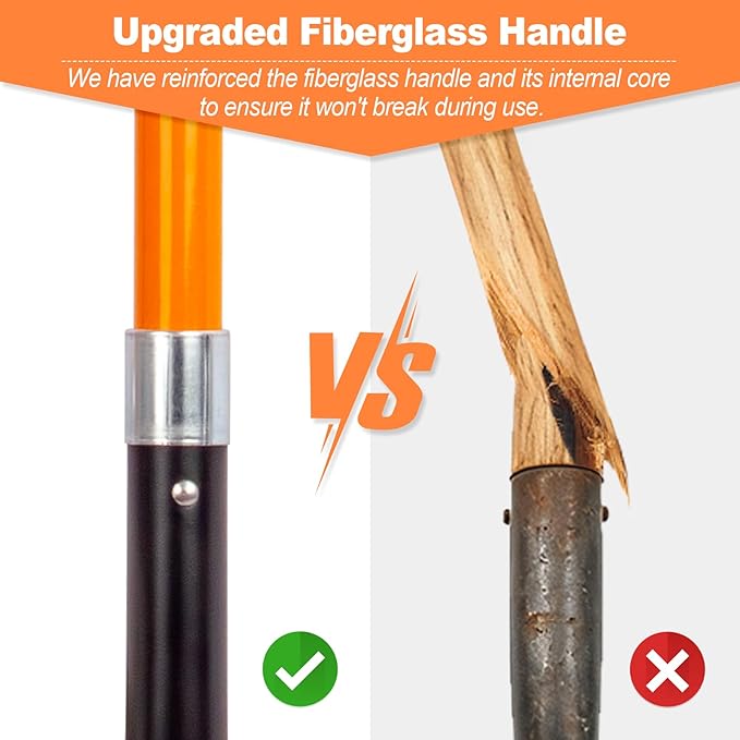 - Reinforced Handle: Featuring a thickened fiberglass handle with an internal core reinforcement, the trench shovel handle structure is significantly strengthened to resist breakage and damage during heavy use. 2 non-slip grips provide a comfortable and secure hold.