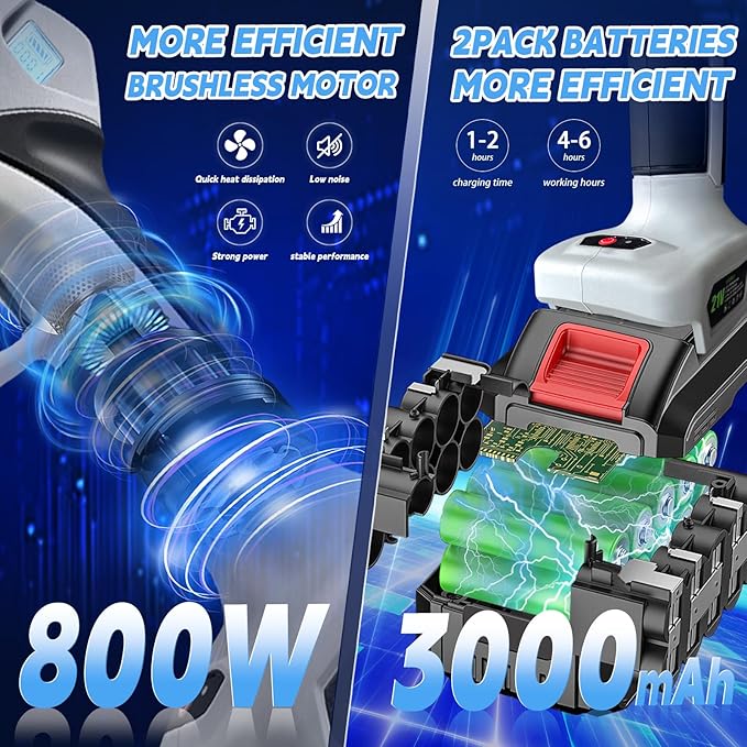 - 【Powerful 800W Brushless Motor】Designed as a high-performance branch cutter.800W Brushless Motor for 60% longer lifespan, delivering robust and steady power to significantly reduce pruning task difficulty and maintenance requirements.