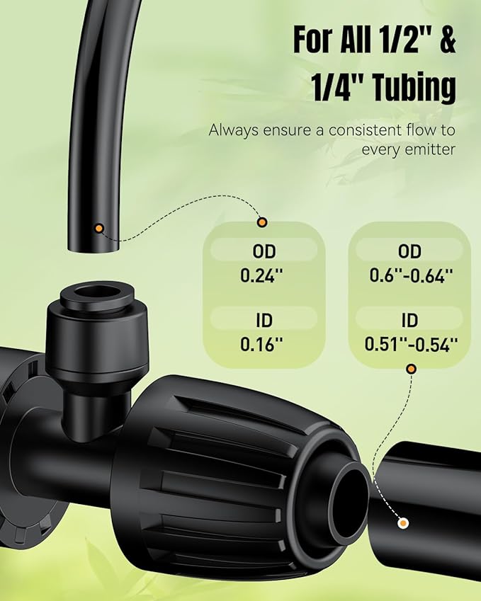 - Optimized Water Distribution: Enjoy balanced pressure throughout your irrigation system! Secure locking mechanism in the 1/2'' to 1/4'' drip irrigation tee connector effectively prevents leaks or budging. Always ensure a consistent flow to every emitter