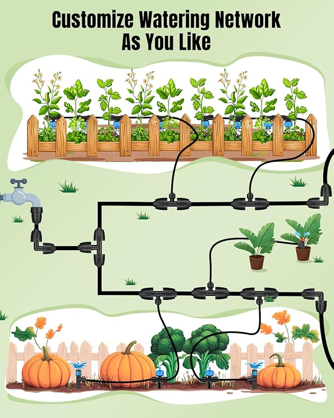 - Wide Application: Ideal drip irrigation parts for creating branch lines in any planting zone, including raised beds, vegetable gardens, greenhouses, patios, lawns, and more. Effortlessly bring life to every corner of your space