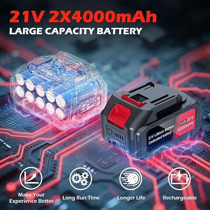- ⚡ 21v 2*4.0AH Batteries&Fast Charger-21V cordless tiller cultivator is equipped with two 4.0AH lithium-ion batteries and can work continuously for 60 minutes. The cordless design allows you not to worry about power supply issues. Rotary cultivator can be charged in as fast as one hour, so you don't have to worry about battery life. Reasonable alternating use can increase your efficiency by 200% and help you complete your gardening work quickly and efficiently!