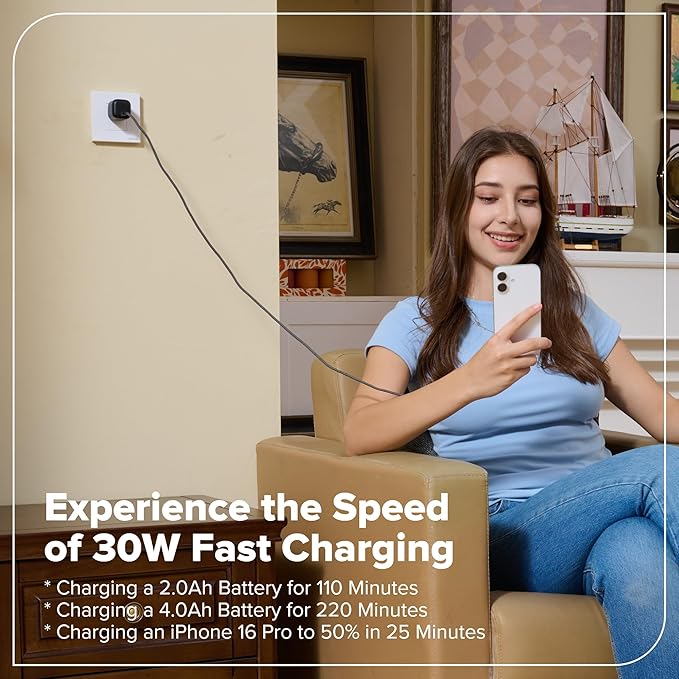 - Ultra-Compact USB C Charger: Experience the power of GaN technology with this 30W Greenworks Charger, delivering 70% smaller size than original chargers while maintaining high-speed charging for devices like iPhone 14/Pro/Pro Max/Pro/Pro Max, Galaxy, and iPad.