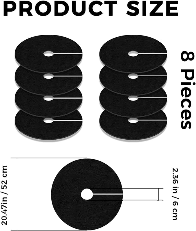 - These non-woven tree mulch rings are pre-cut with adjustable holes/seams, fitting any tree trunk size—ideal for new trees, shrubs, or orchards. The flexible tree ring (20.47" size) fits any trunk easily—this tree rings weed barrier sets up in minutes with no tools, saving you time on garden upkeep