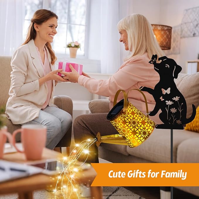 Solar Watering Can Lights, Dog Hanging Lantern Solar Lights Outdoor, Dog Lover Gifts for Mom Women Birthday Mother's Day Christmas, Waterproof Garden Decor Outside Patio Yard Pathway Backyard