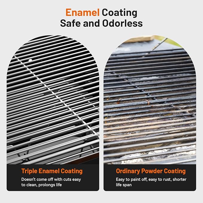 - Thick Enameled Coating: Traveler grill is made of thicker cold rolled steel material and glossy enameled mirror surface, which prevents the paint from peeling off during the grilling process. Easy to clean and is not easy to rust. Improves the service life of the barbecue grill.