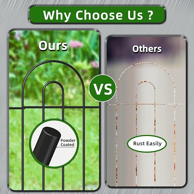 - High visibility and decoration, You can install this folding garden fence without any tools or soil digging required. Wire border fence for protection of plant and flower beds. Artsy arch shaped, self-supporting suits various landscaping and horticultural projects.